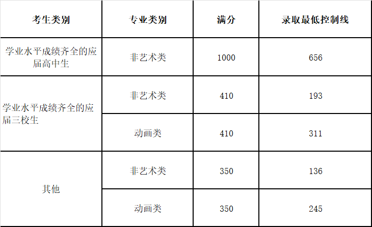 2026年依法自主招生笔试最低录取控制线